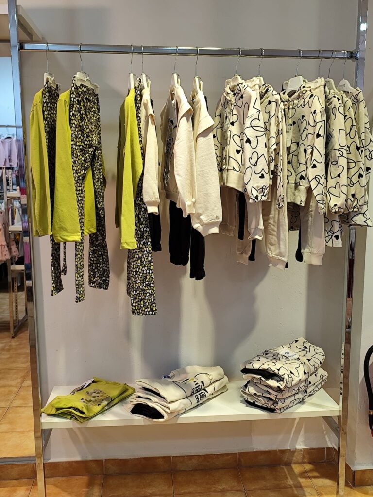 Ofrecemos una amplia variedad de ropa para el día a día: camisetas, conjuntos, pijamas para bebés, y una selección de accesorios como calcetines, leotardos, pinzas y gomas de cabello. Todo pensado para que los más pequeños se sientan cómodos y a la moda.